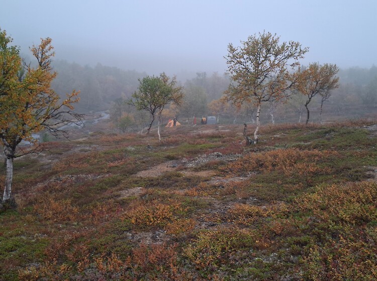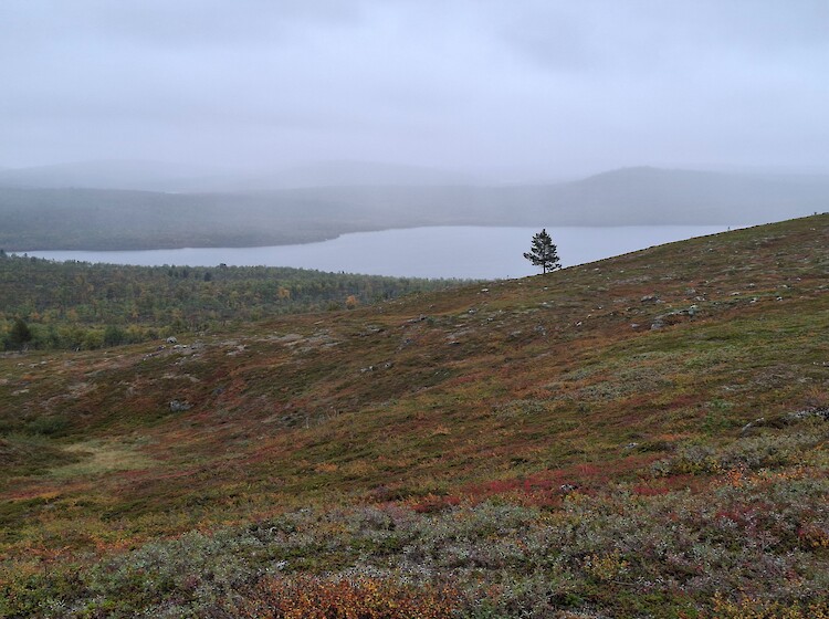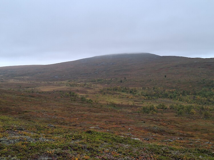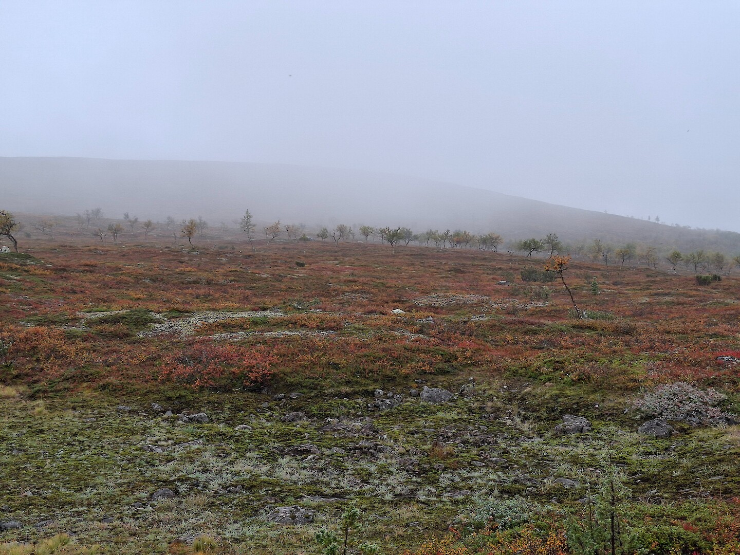 Tiistai aamuna oli melkoinen sumu. Lähdimme päiväreppujen kanssa etelä-lounaan suuntaan kiertelemään Peltoaivin rinteitä. Avotunturissa sumussa on omanlainen tunnelma. Peltoaivin huiputus jätettiin väliin, kun vesisade alkoi.