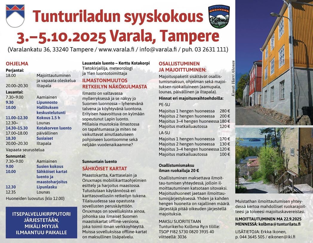 Ilmoittautuminen tapahtumaan on käynnissä. Tarkemmat tiedot ohjelmasta ja ilmoittautumisohjeet löytyvät Tunturilatulehdestä 2-2025.